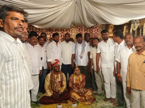 నూతన వధూవరులను ఆశీర్వదించిన కొమ్మూరి ప్రశాంత్ రెడ్డి..