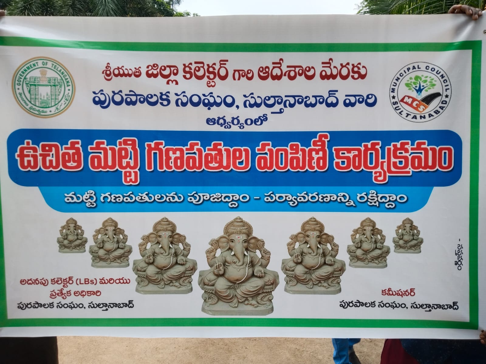 మున్సిపల్ కమిషనర్ టి.రమేష్ ఆధ్వర్యంలో మట్టి వినాయకుల పంపిణీ.